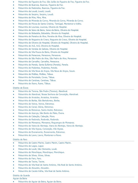 Listagem dos Pelourinhos nacionais (por Distritos)